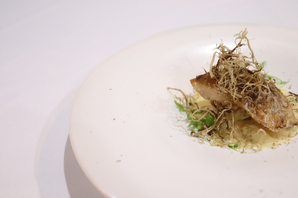 コンソメやfon de volaille などとも魚介類は相性が良いことから、甘鯛の松笠焼きにコンソメを注ぐ様な仕立ては馴染みがあるかと思います。
