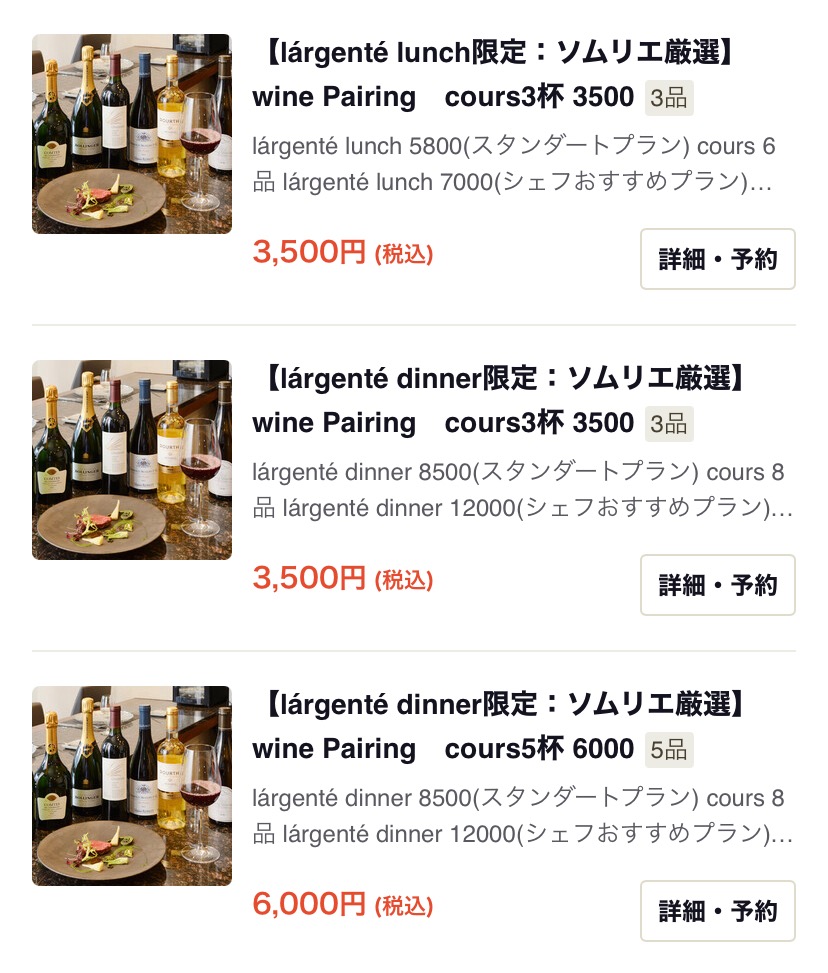 ◼️【lárgenté dinner限定:ソムリエ厳選】wine Pairing cours5杯 6000